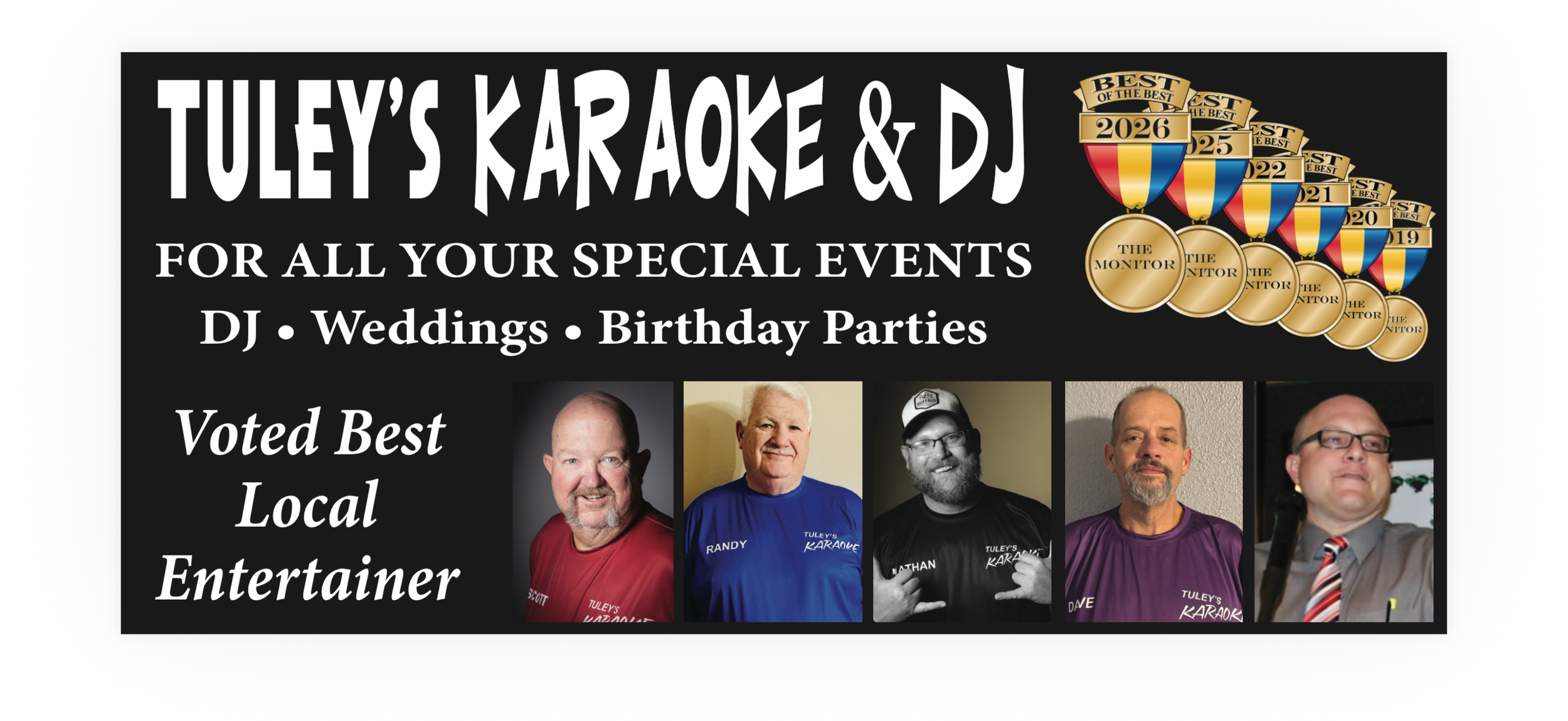 No matter the occasion, Tuley’s Karaoke & DJ’s has the perfect music, entertainment, and expertise to make your event unforgettable!